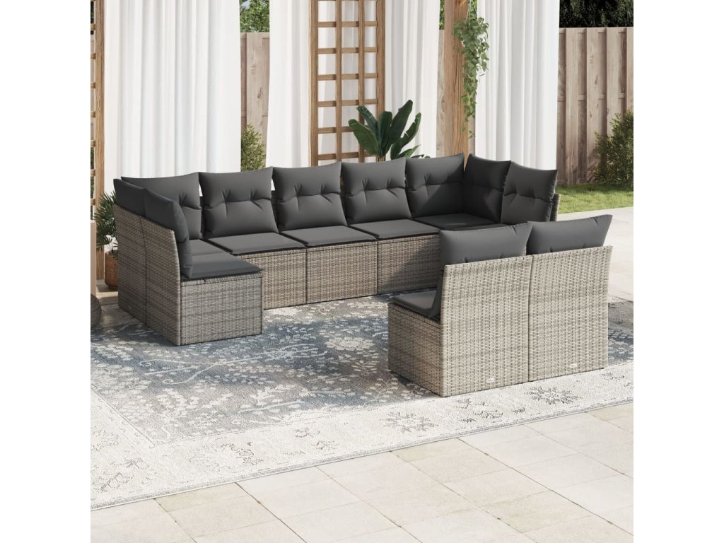 9dílná zahradní sedací souprava s poduškami šedá polyratan 3249989