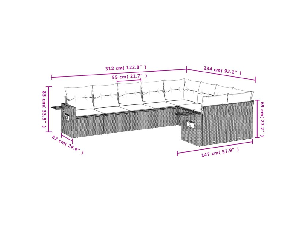 9dílná zahradní sedací souprava s poduškami šedá polyratan 3252977