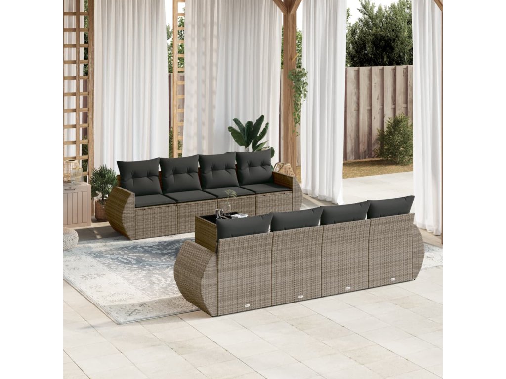 9dílná zahradní sedací souprava s poduškami šedá polyratan 3253487