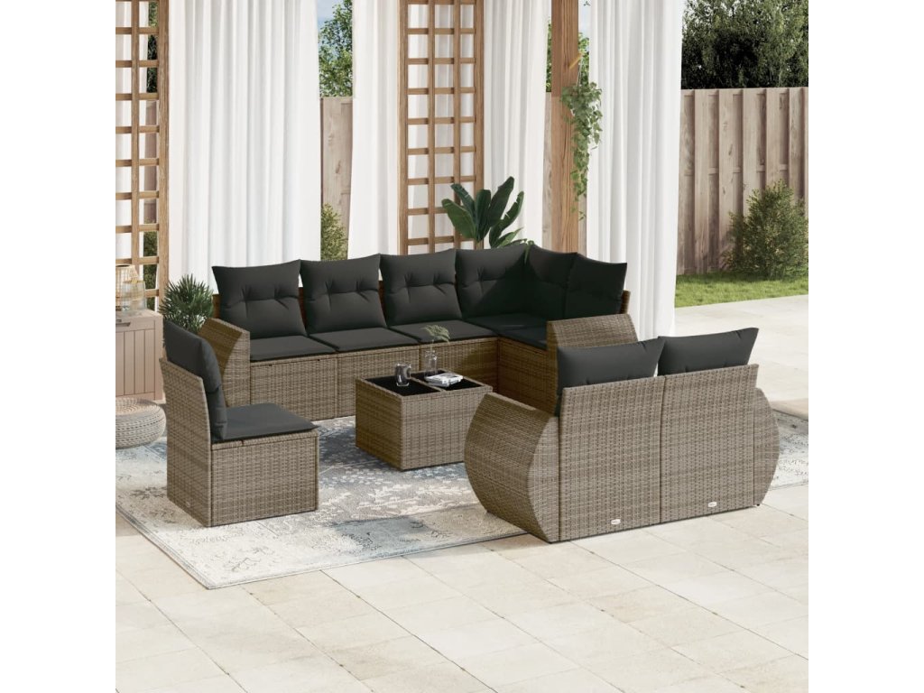 9dílná zahradní sedací souprava s poduškami šedá polyratan 3253987