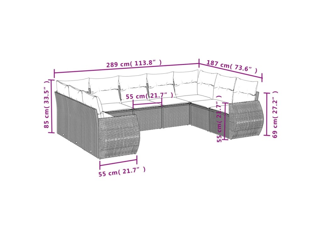 9dílná zahradní sedací souprava s poduškami šedá polyratan 3254137