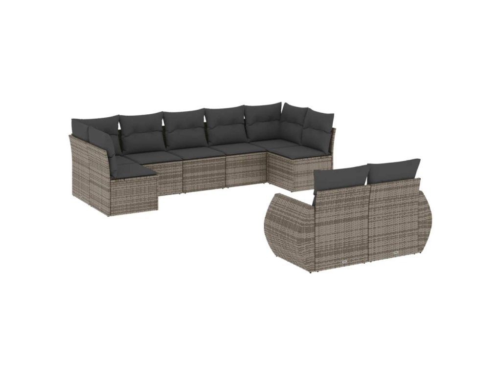 9dílná zahradní sedací souprava s poduškami šedá polyratan 3254157