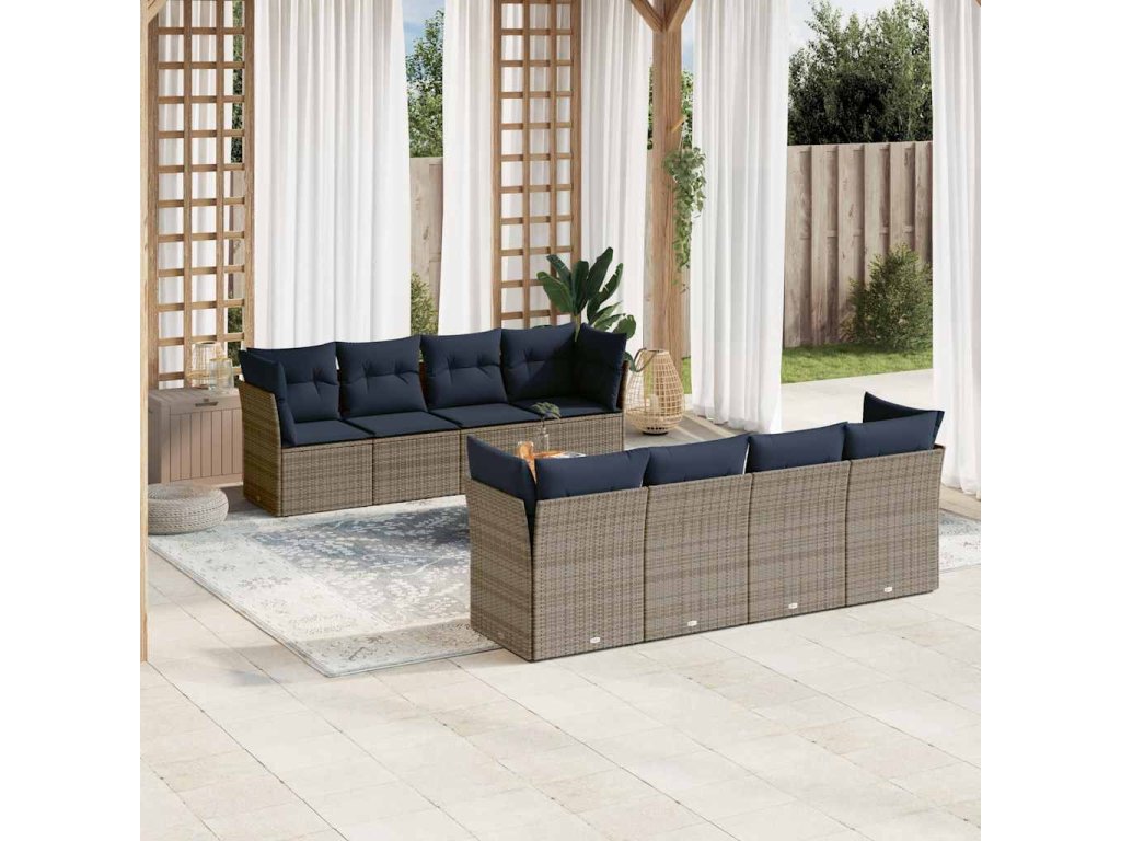 9dílná zahradní sedací souprava s poduškami šedá polyratan 3255858