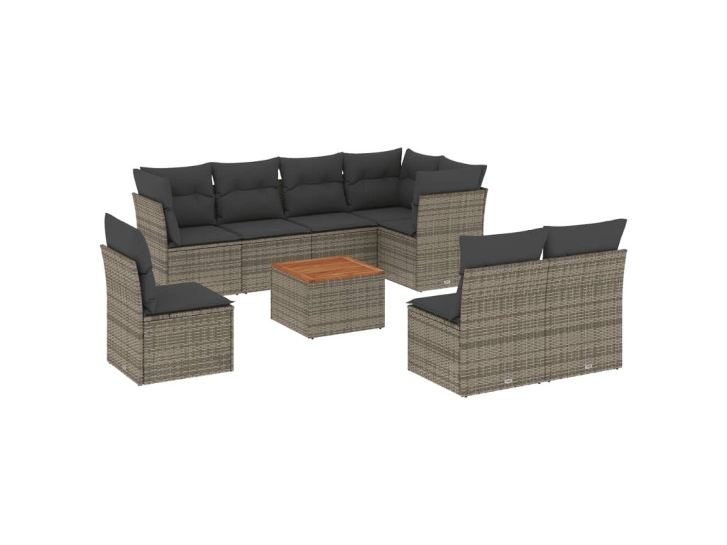 9dílná zahradní sedací souprava s poduškami šedá polyratan 3256018