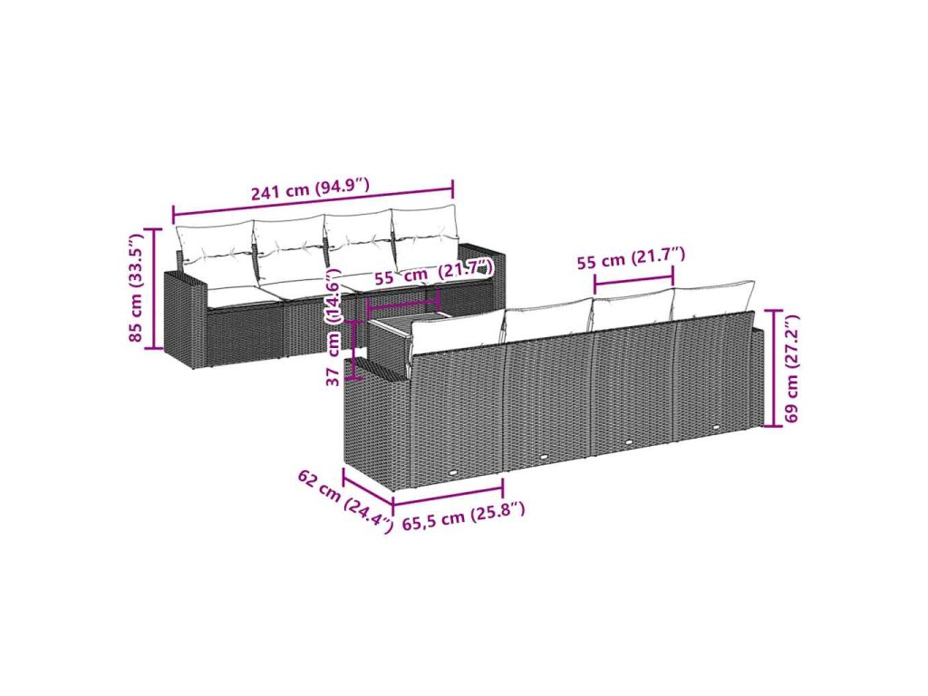 9dílná zahradní sedací souprava s poduškami šedá polyratan 3256376