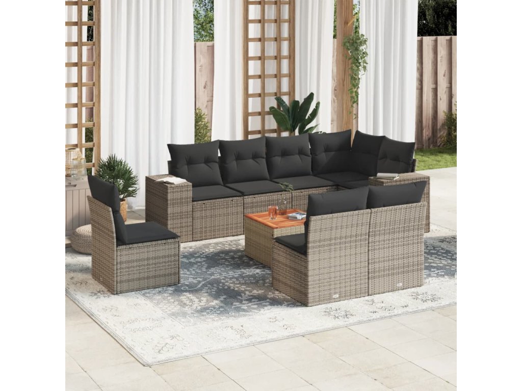9dílná zahradní sedací souprava s poduškami šedá polyratan 3257817