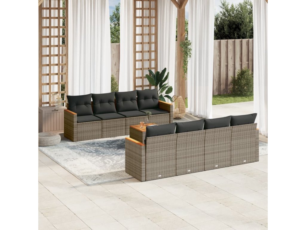 9dílná zahradní sedací souprava s poduškami šedá polyratan 3258224