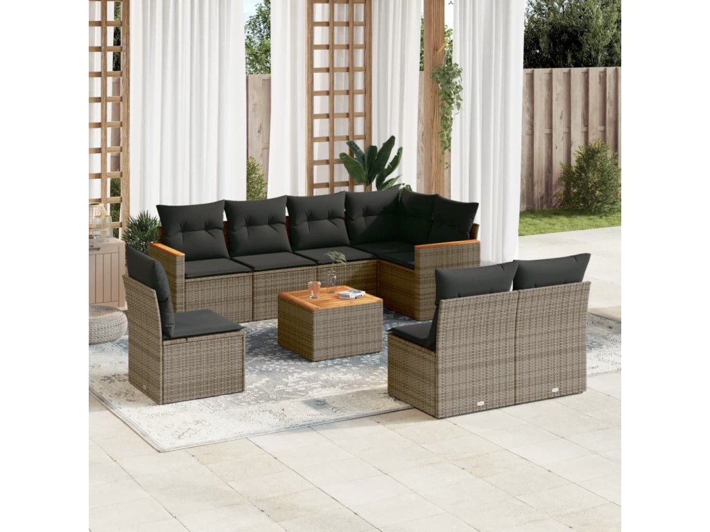 9dílná zahradní sedací souprava s poduškami šedá polyratan 3258455