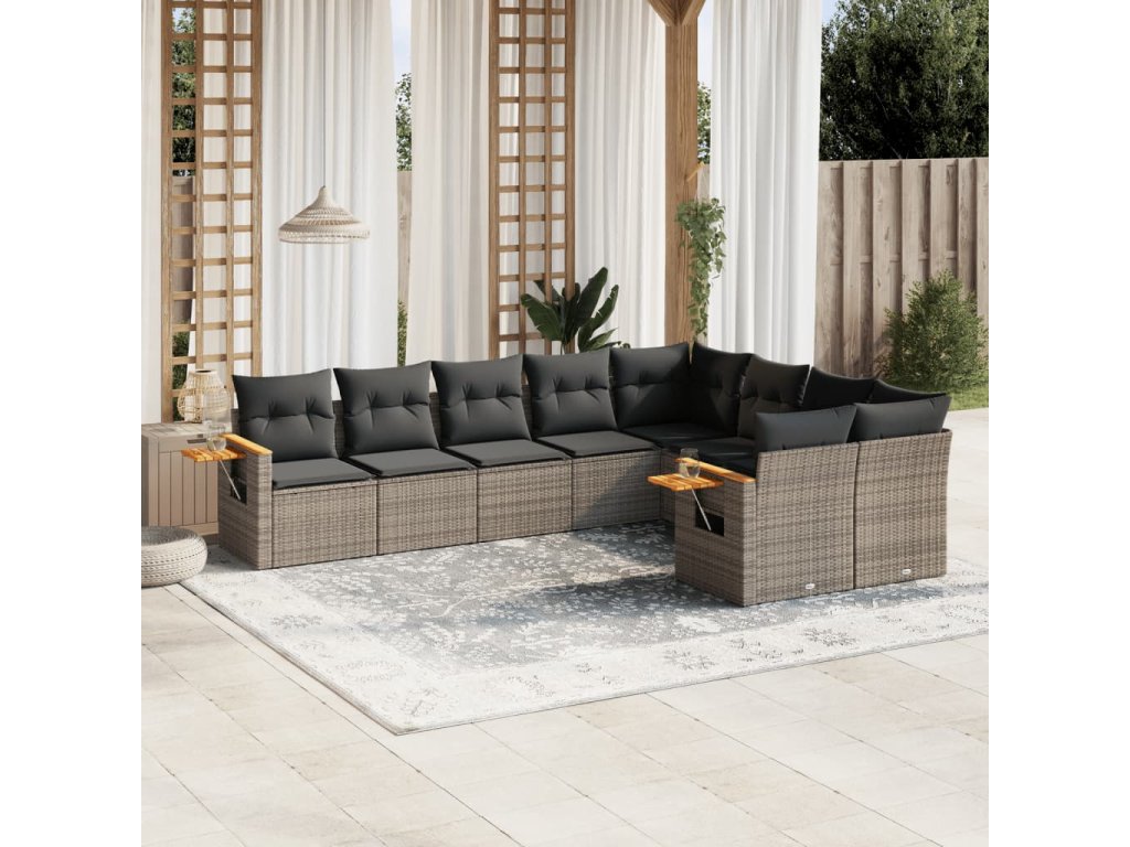 9dílná zahradní sedací souprava s poduškami šedá polyratan 3259547