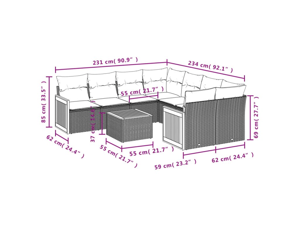 9dílná zahradní sedací souprava s poduškami šedá polyratan 3259911
