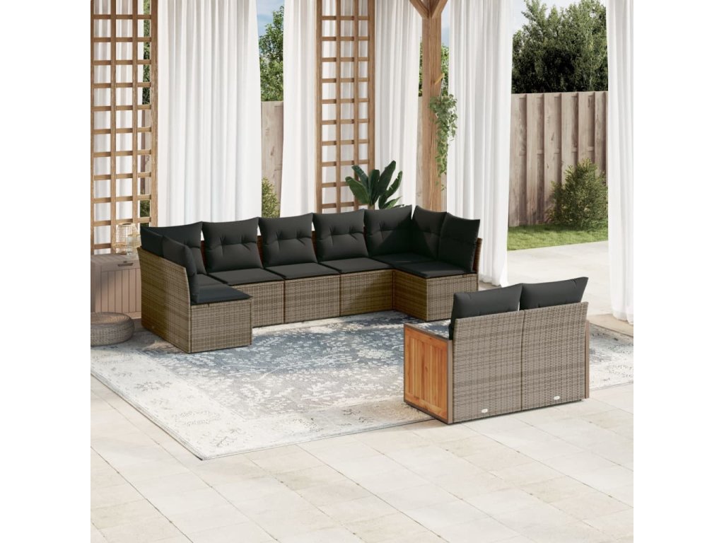 9dílná zahradní sedací souprava s poduškami šedá polyratan 3260373
