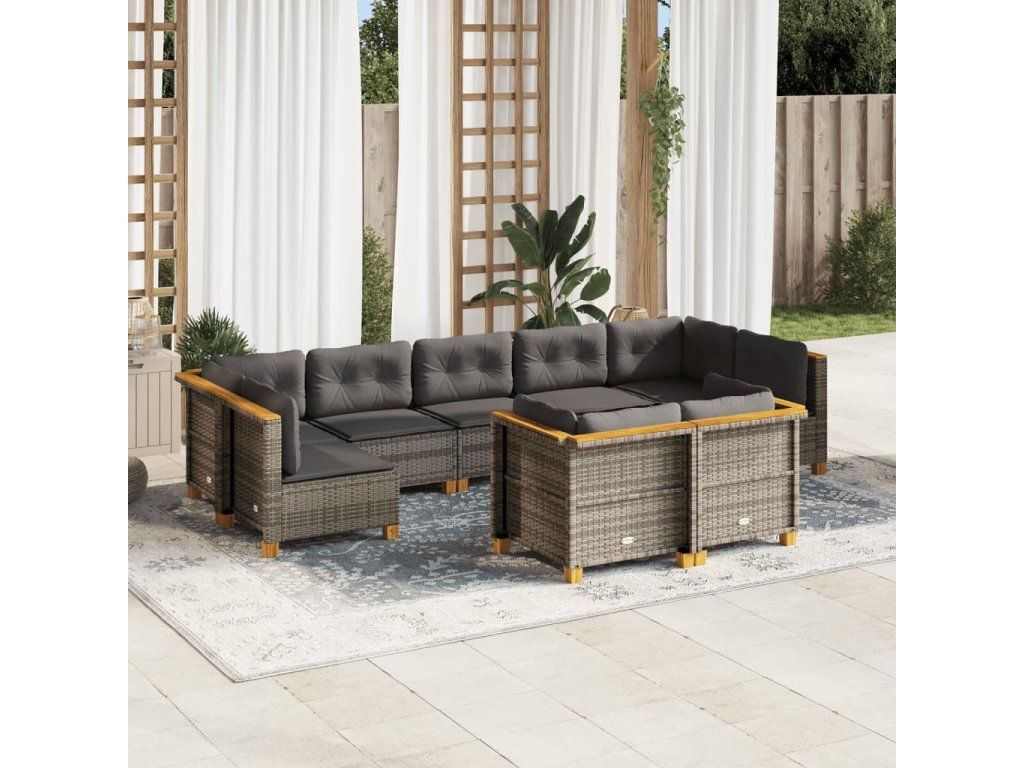 9dílná zahradní sedací souprava s poduškami šedá polyratan 3261990