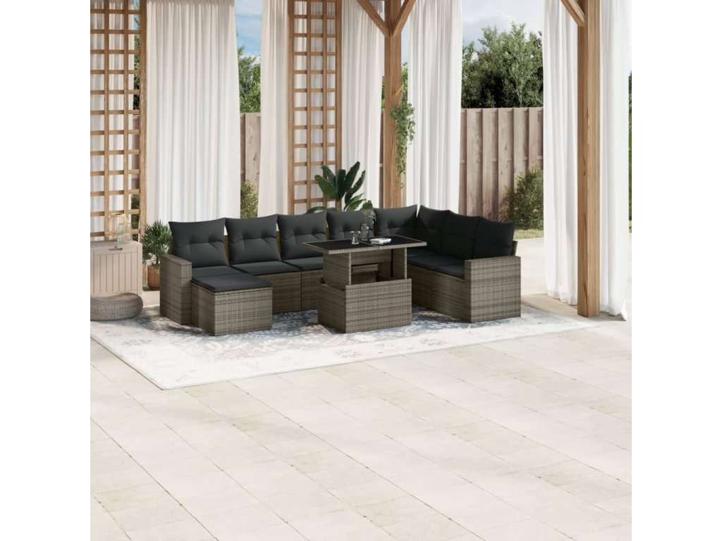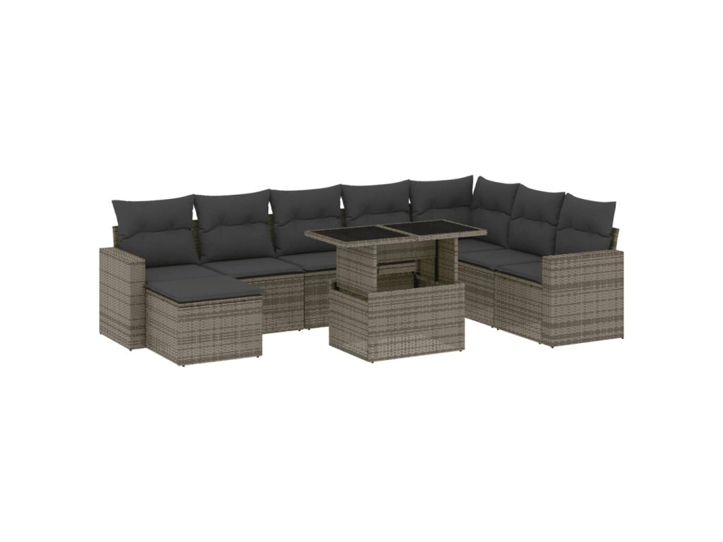 9dílná zahradní sedací souprava s poduškami šedá polyratan 3267470