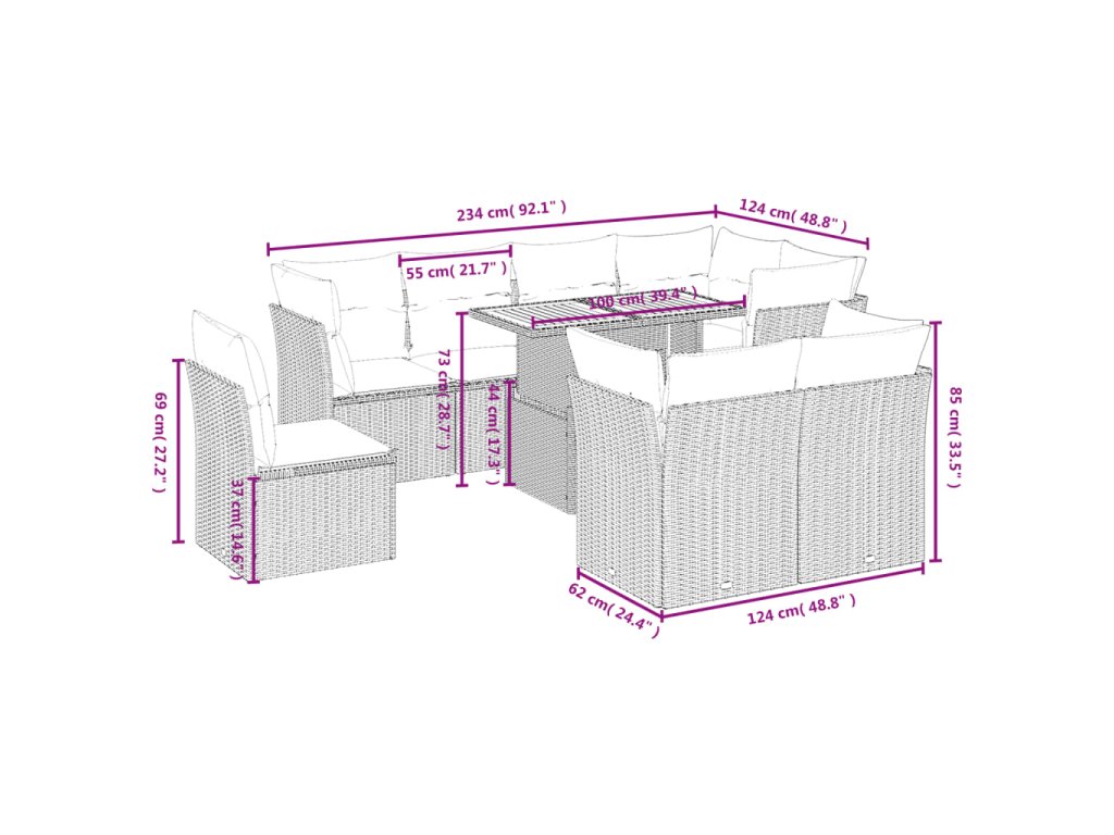 9dílná zahradní sedací souprava s poduškami šedá polyratan 3270934