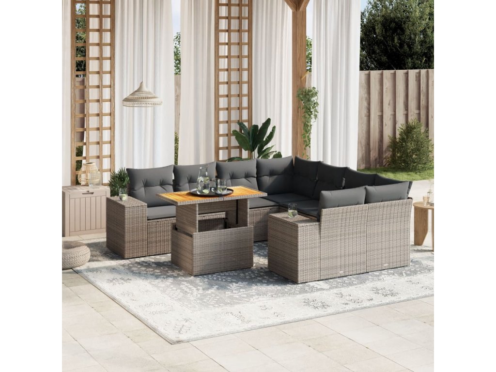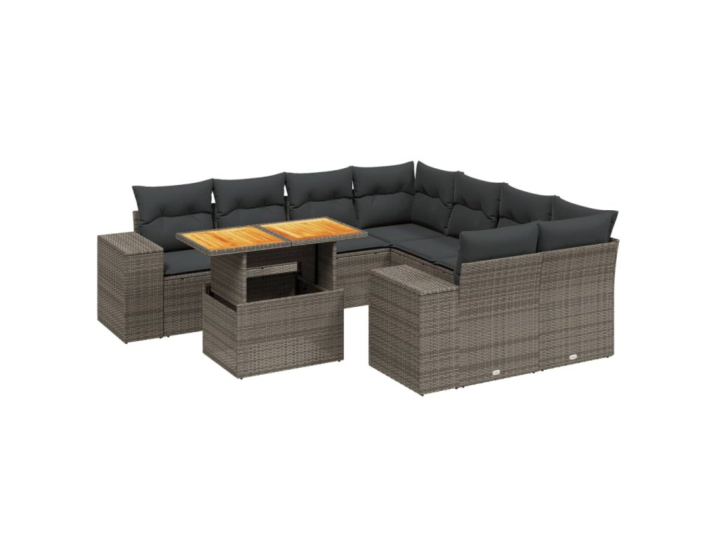 9dílná zahradní sedací souprava s poduškami šedá polyratan 3272565