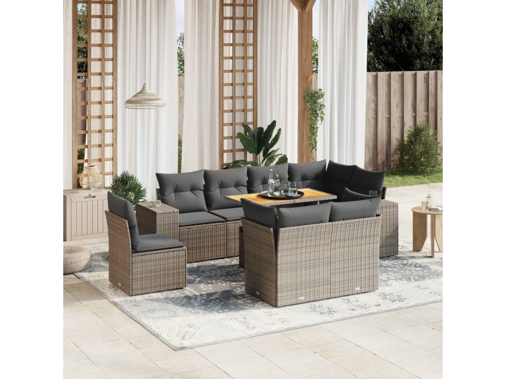 9dílná zahradní sedací souprava s poduškami šedá polyratan 3272733