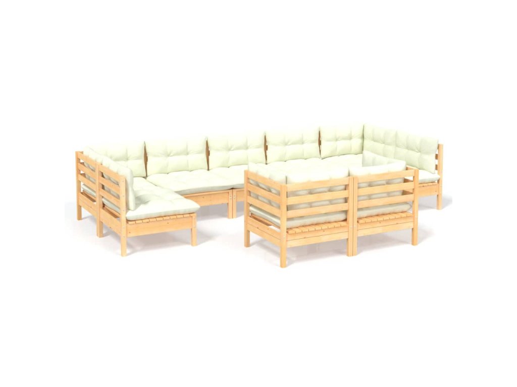 9dílná zahradní souprava krémové podušky masivní borovice 3097247