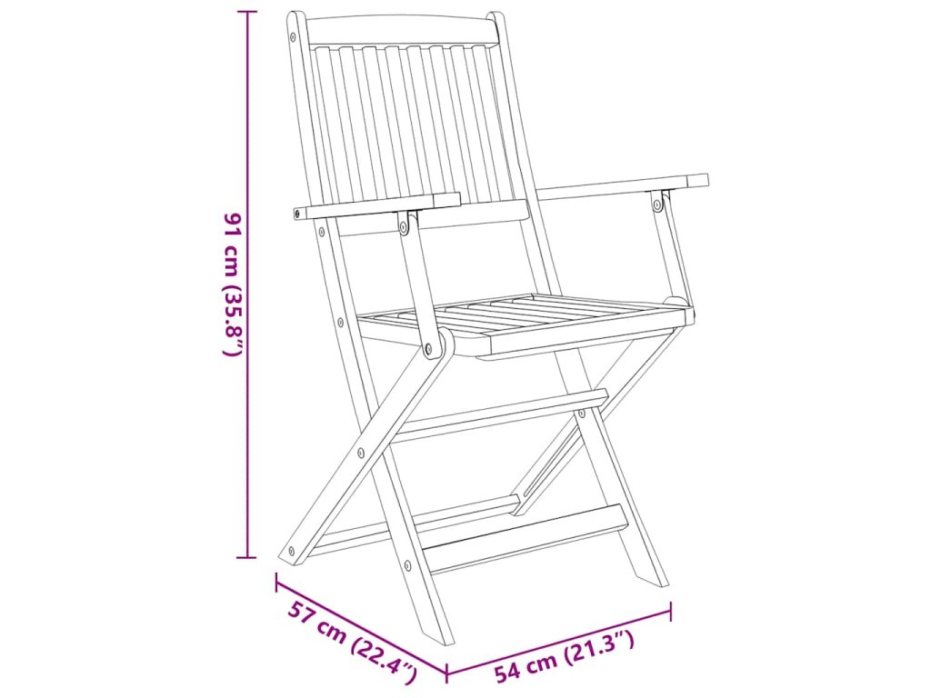 Zahradní jídelní set je vyrobený z masivního akáciového dřeva. Jedná se o tvrdé dřevo z tropů, které je odolné vůči povětrnostním vlivům a má dlouhou životnost. Olejem napuštěný povrch nábytku snadno vyčistíte navlhčeným hadříkem. Jak zahradní židle, tak stůl je možné složit, aby zbytečně nepřekážely, když je zrovna nepoužíváte.