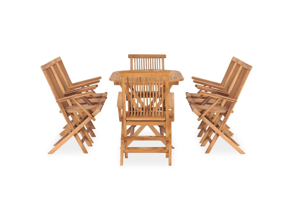 Tento elegantní jídelní set z masivního teakového dřeva zkrášlí vaší zahradu, terasu nebo jídelnu.