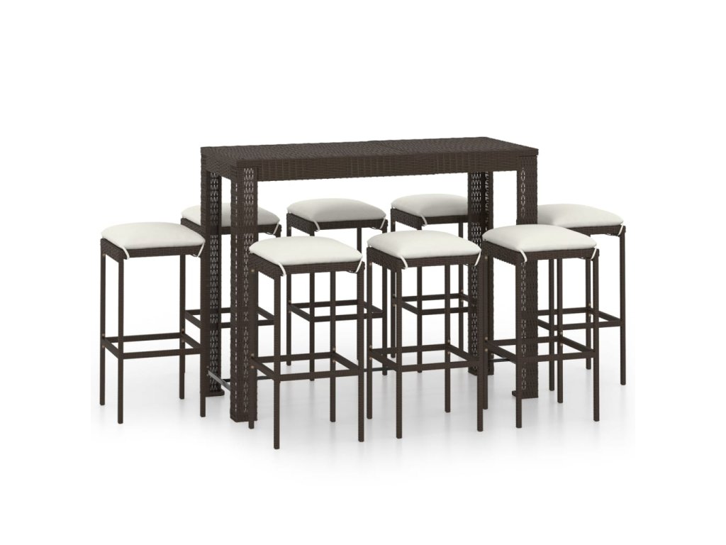 9dílný zahradní barový set s poduškami polyratan hnědý 3064789