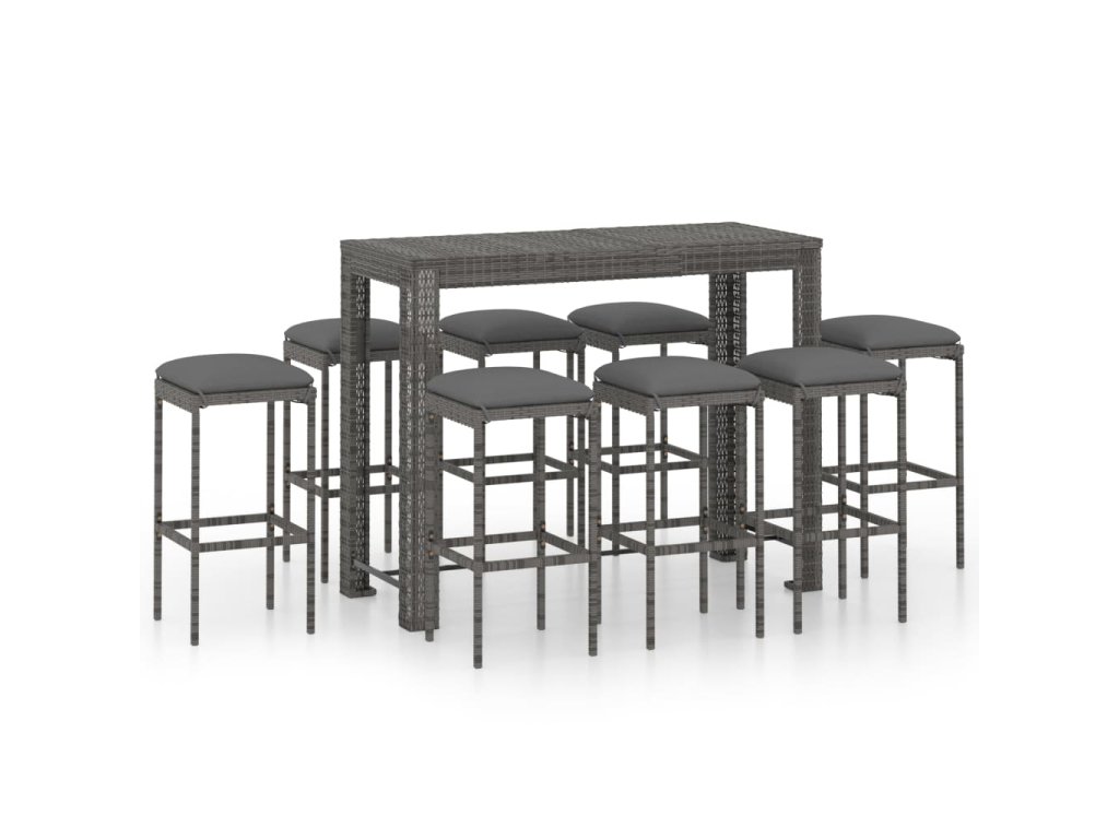 9dílný zahradní barový set s poduškami polyratan šedý 3064791