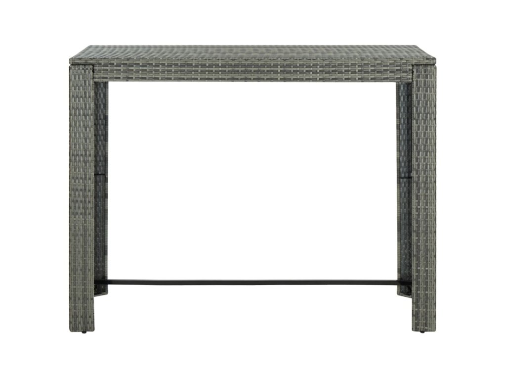 Barový stůl je zpevněný ocelovým rámem s práškovým nástřikem, takže je stabilní a bytelný. Deska stolu je ideální pro servírování nápojů, jídla nebo k vystavení dekorativních předmětů. Stoličky mají pevnou ocelovou konstrukci a jsou vyrobené z klimaticky odolného PE ratanu, který je zárukou stability a umožňuje snadné přenášení. Poduška a opěrka na nohy přispívají k většímu pohodlí při sezení na stoličce. Polyesterový potah na podušky se skrytým zipem usnadňuje čištění.