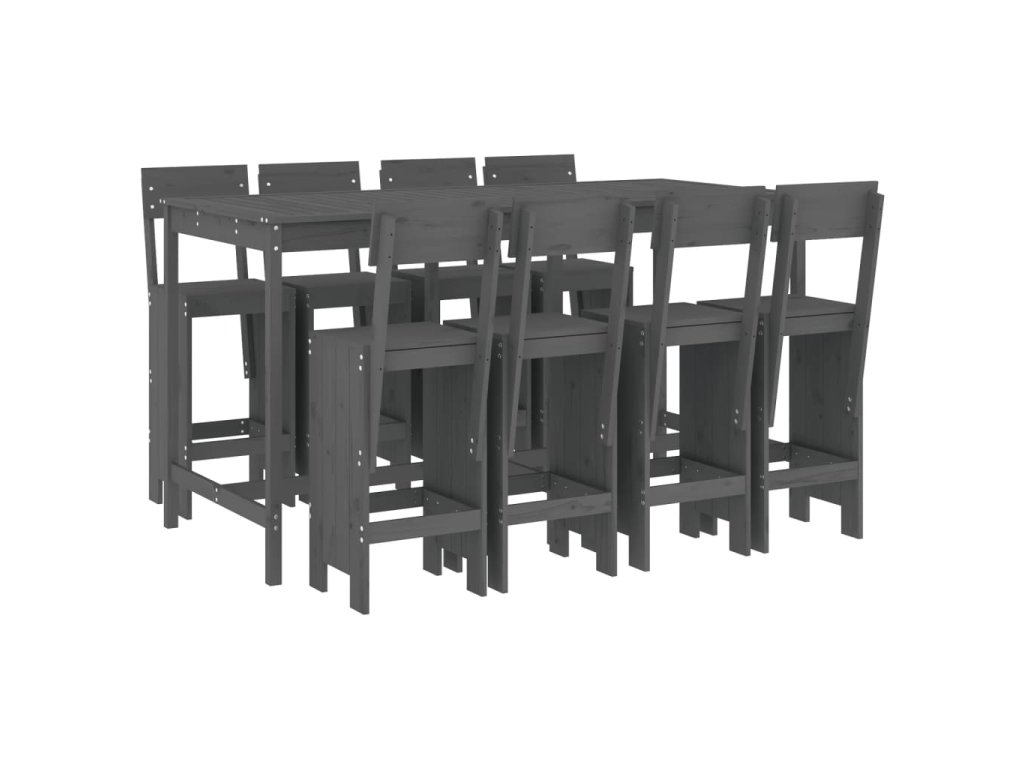 9dílný zahradní barový set šedý masivní borové dřevo 3157819