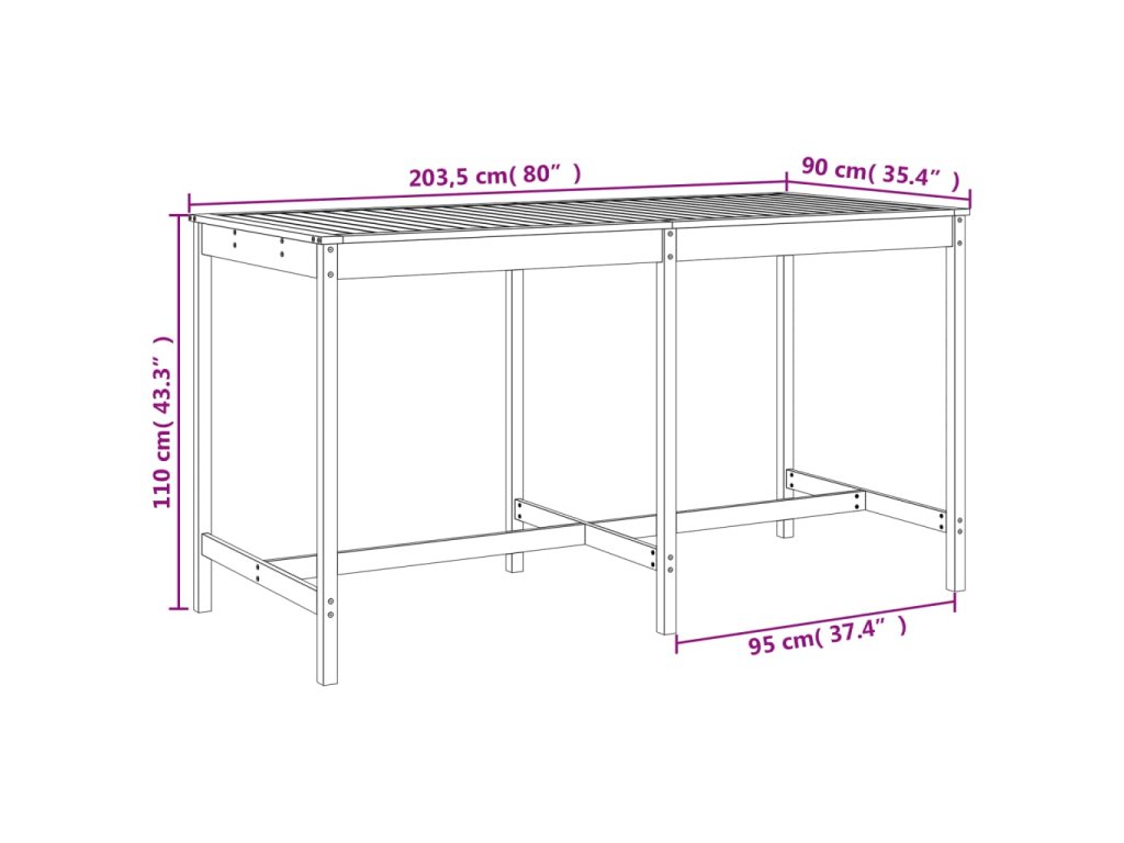 - Rozměry zahradního stolku: 203,5 x 90 x 110 cm (D x Š x V)