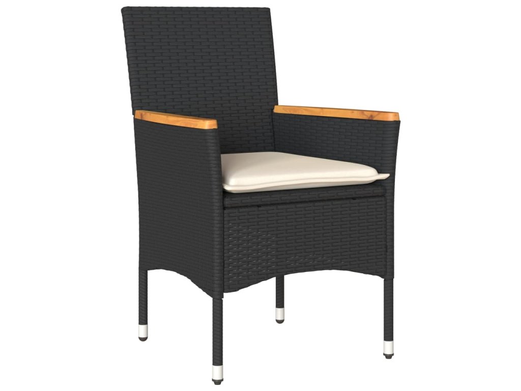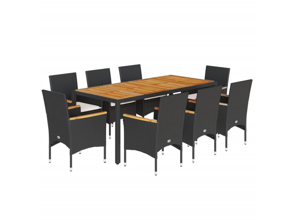 9dílný zahradní jídelní set a podušky černý polyratan a akácie 3278632