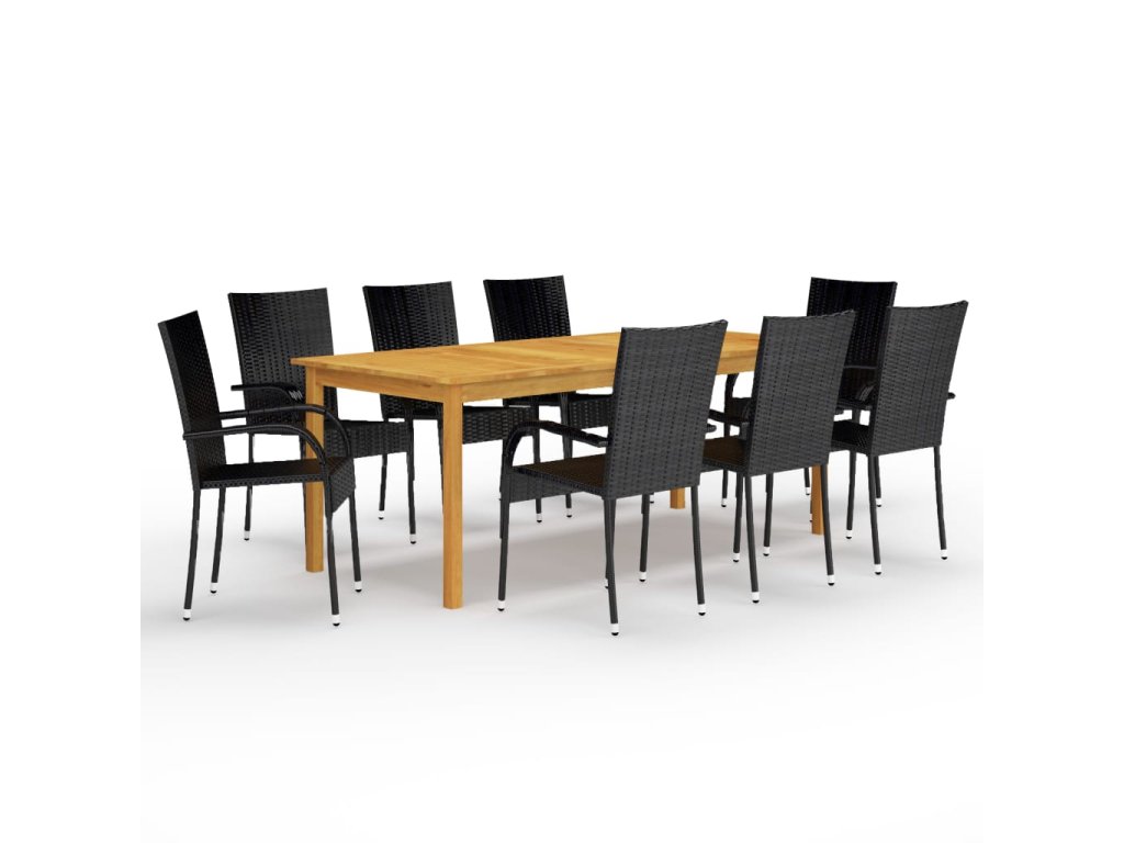 Jídelní stůl je zhotovený z masivního akáciového dřeva s olejovaným povrchem, takže je stabilní, odolný a nenáročný na údržbu. Zahradní židle mají rám z práškově lakované oceli, opletený PE ratanem, který výborně vzdoruje klimatickým vlivům. Dlouho vám proto vydrží a snadno je očistíte. Jídelní židle mají také lehkou konstrukci a lze je stohovat, aby vám zbytečně nepřekážely, když je zrovna nepoužíváte.