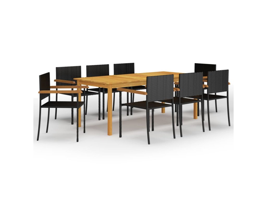 - Materiál: PE (polyetylenový) ratan, ocel s práškovým nástřikem, masivní akáciové dřevo
