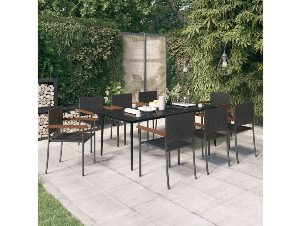 9dílný zahradní jídelní set černý 3099424