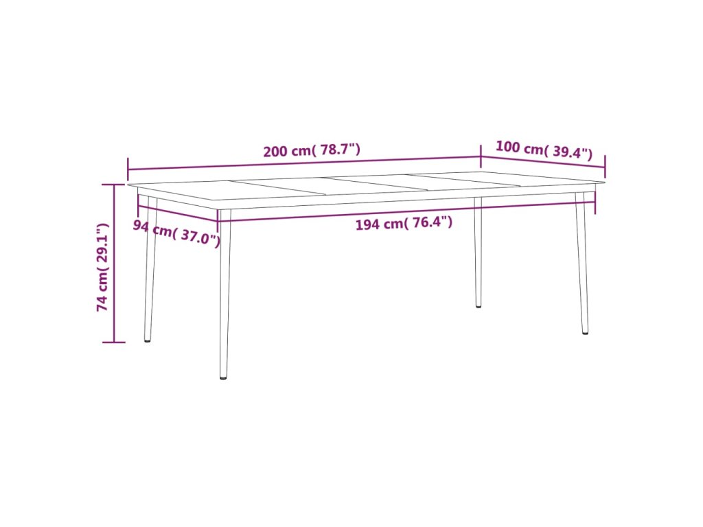- Rozměry: 200 x 100 x 74 cm (D x Š x V)