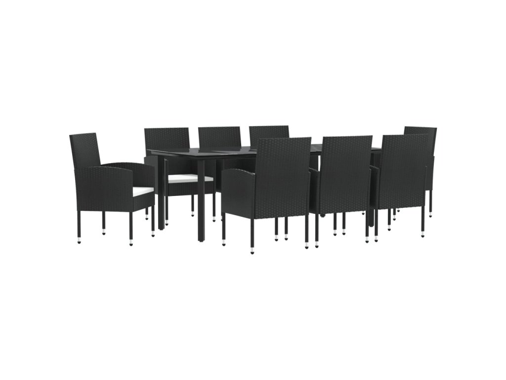 9dílný zahradní jídelní set černý polyratan a ocel 3203319