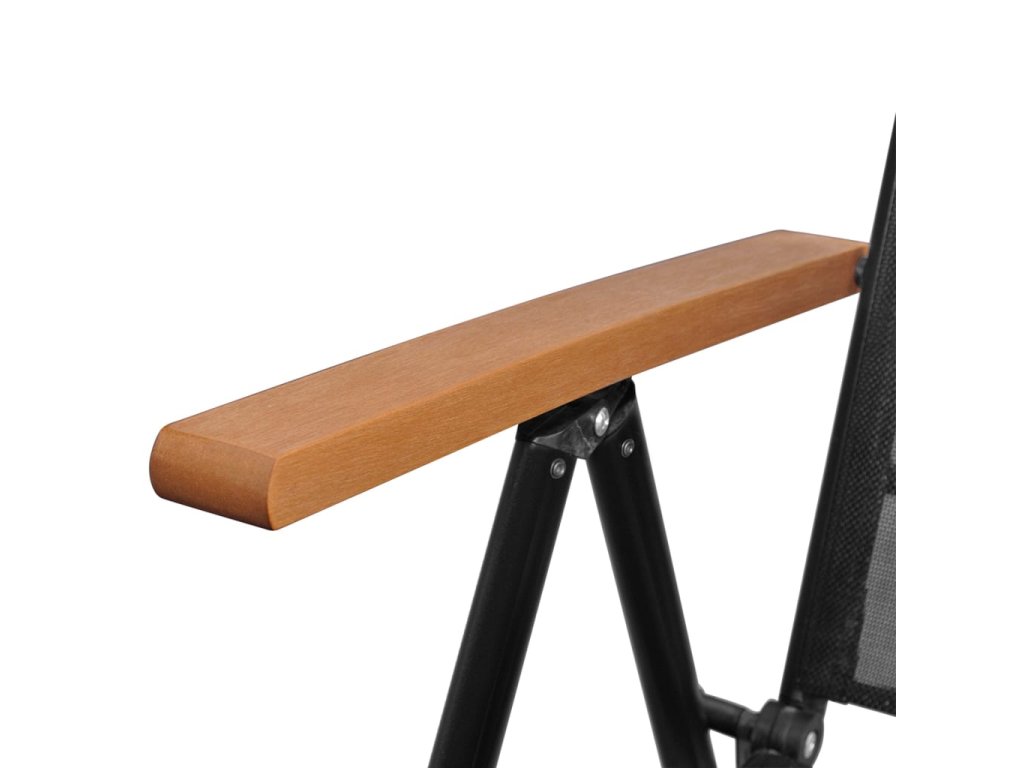 Rám z práškově lakovaného hliníku dodává nábytku na bytelnosti a prodlužuje jeho životnost. Zahradní židle mají sedáky a opěradla ušitá z na dotek měkkého textilenu. Opěradla lze navíc naklánět do 7 různých poloh, aby se vám vždy příjemně sedělo. Područky a horní příčka propůjčují židlím stylový vzhled. Křesla lze také složit, aby vám zbytečně nepřekážela, když je zrovna nepoužíváte. Stůl má desku z dřevoplastu, snadno se tedy čistí a hodí se pro venkovní použití.