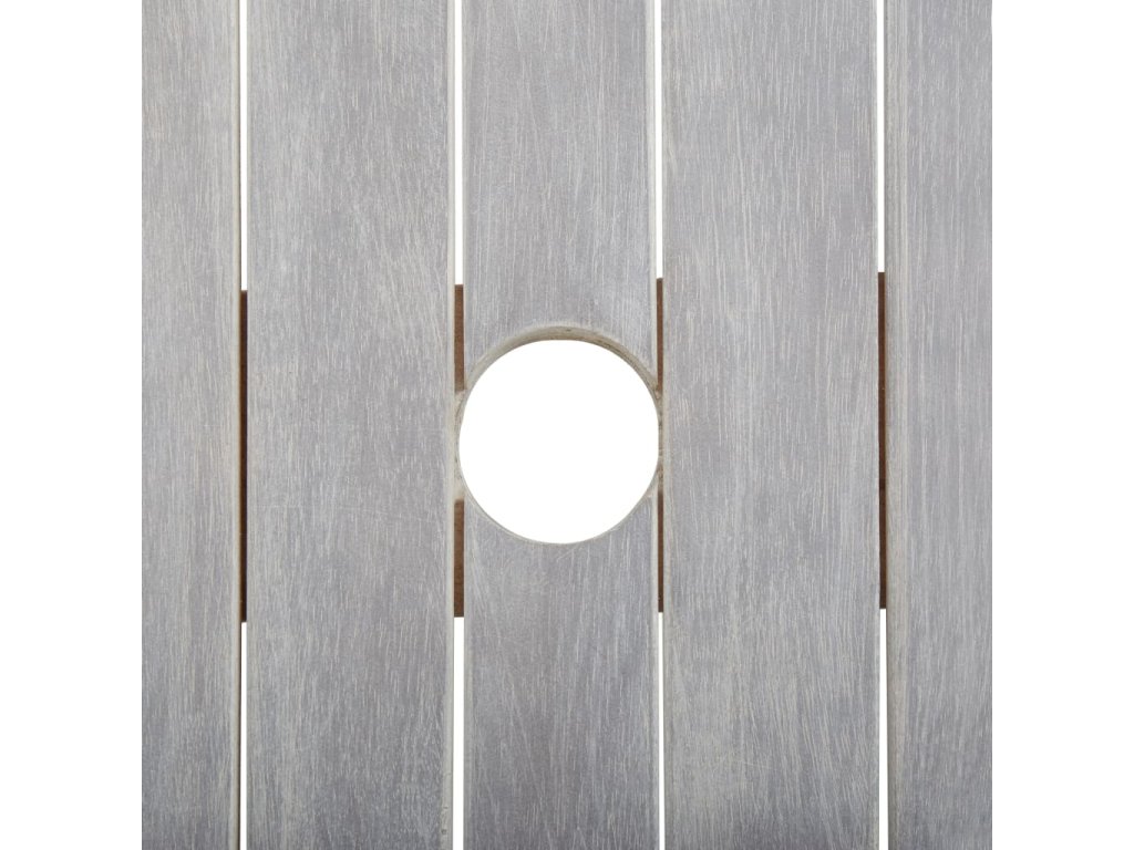 - Praktický otvor na slunečník: Zahradní stůl z masivního dřeva má otvor na slunečník, abyste se případně vyhnuli slunečnímu záření a dešti.