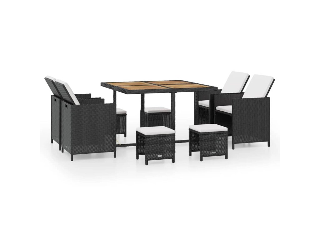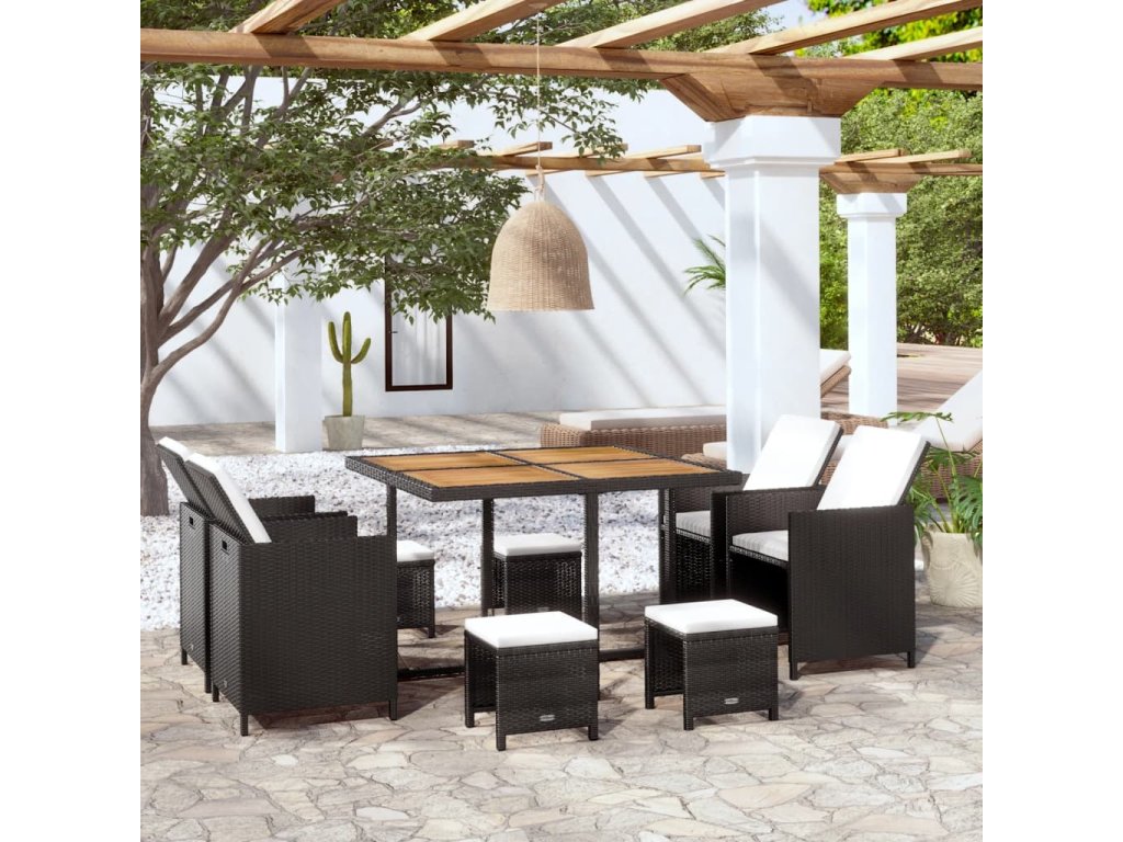 9dílný zahradní jídelní set polyratan a akáciové dřevo černý 42530