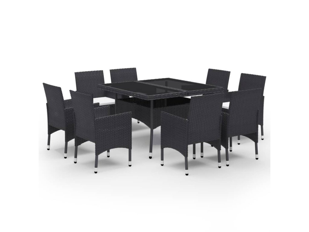 9dílný zahradní jídelní set polyratan a sklo černý 3058338