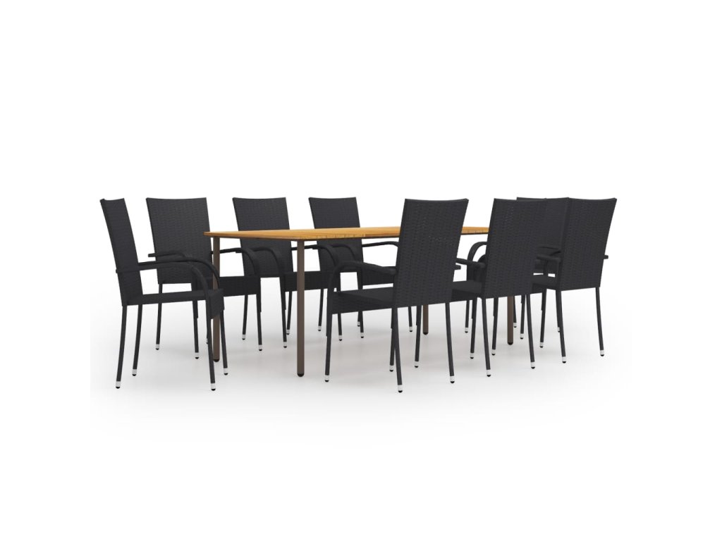 9dílný zahradní jídelní set polyratan černý 3072505