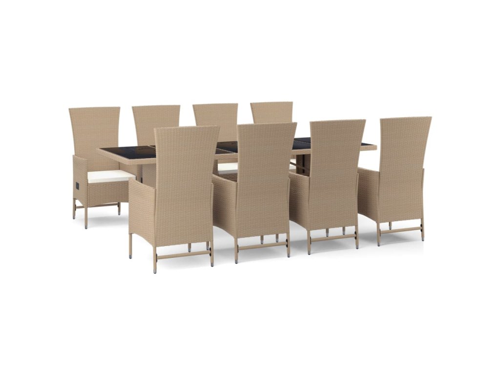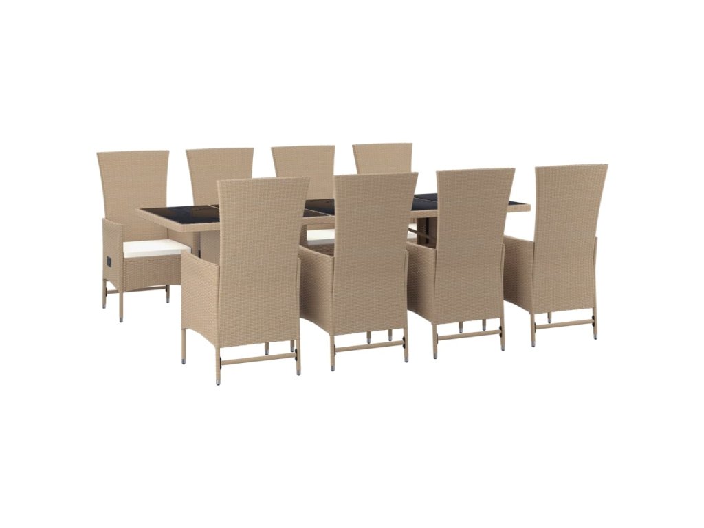 9dílný zahradní jídelní set s poduškami béžový polyratan 3157573