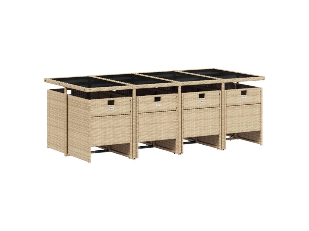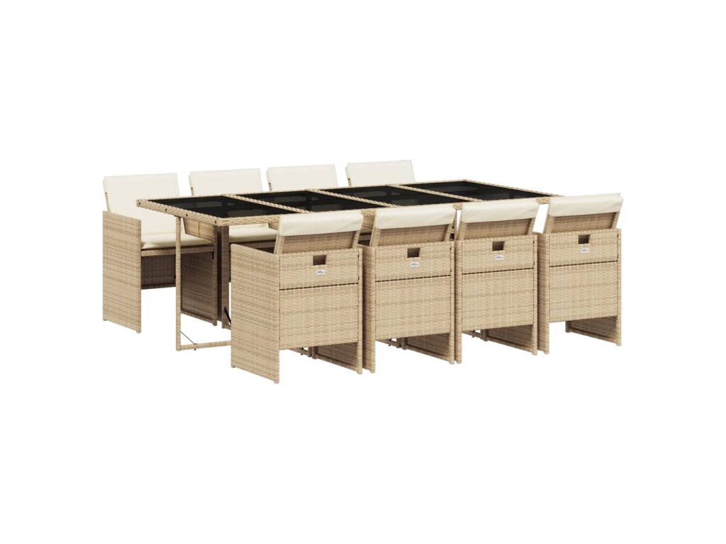 9dílný zahradní jídelní set s poduškami béžový polyratan 3210562