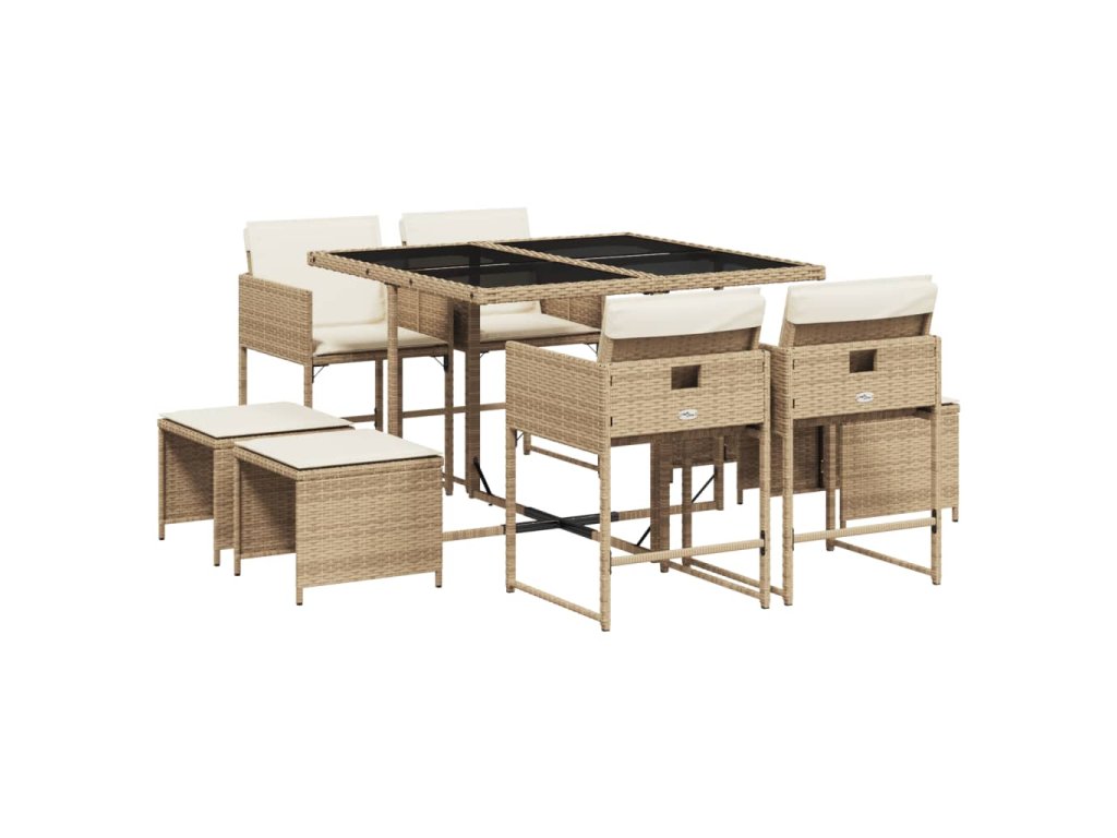 9dílný zahradní jídelní set s poduškami béžový polyratan 3211318