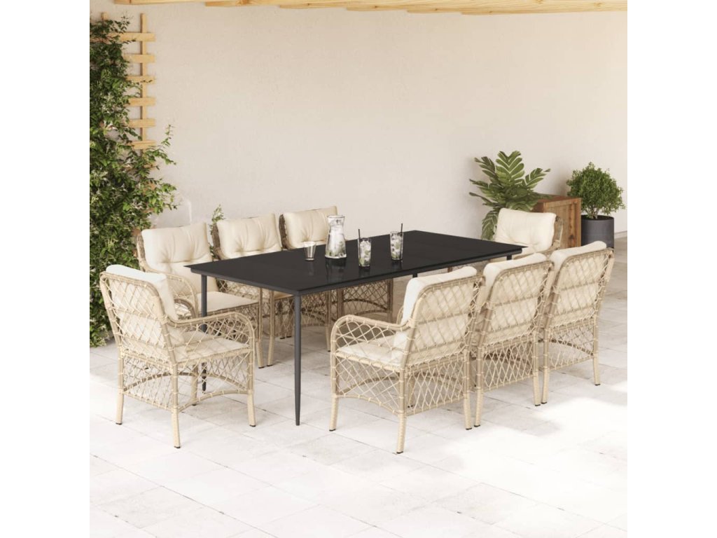 9dílný zahradní jídelní set s poduškami béžový polyratan 3212144