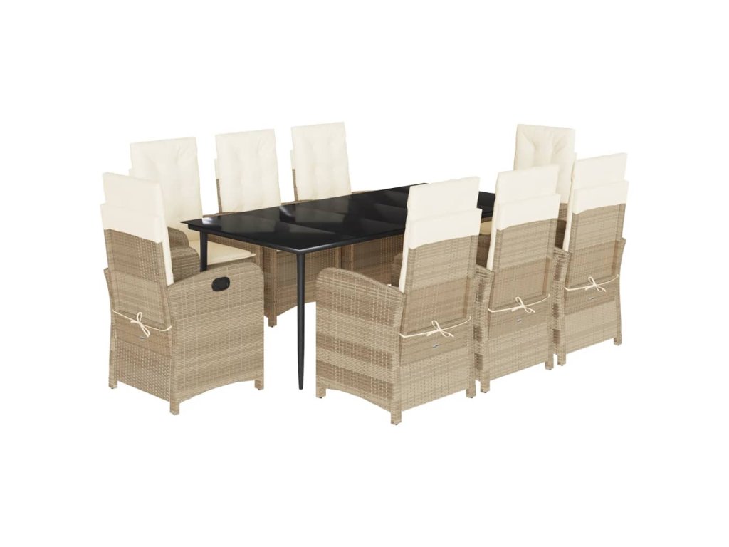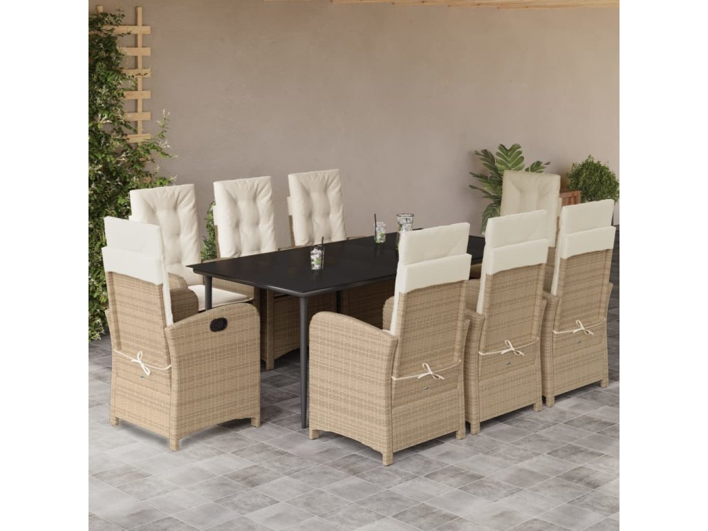 9dílný zahradní jídelní set s poduškami béžový polyratan 3212379