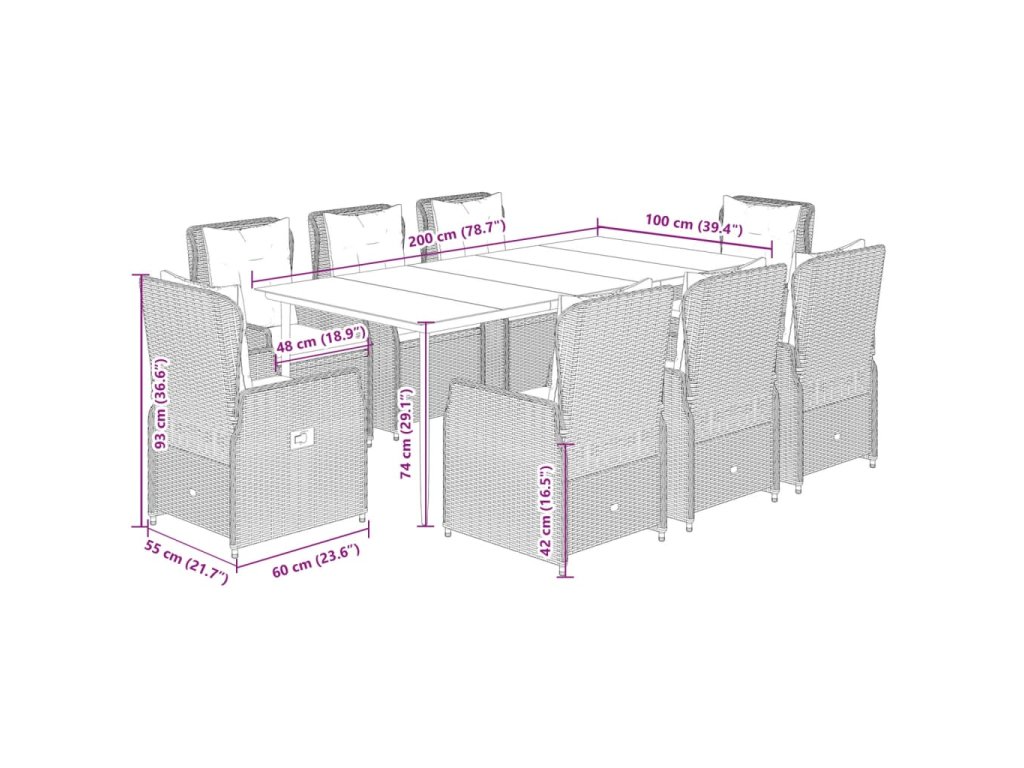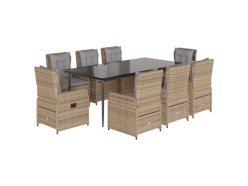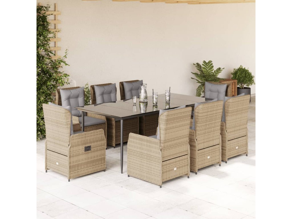 9dílný zahradní jídelní set s poduškami béžový polyratan 3262874