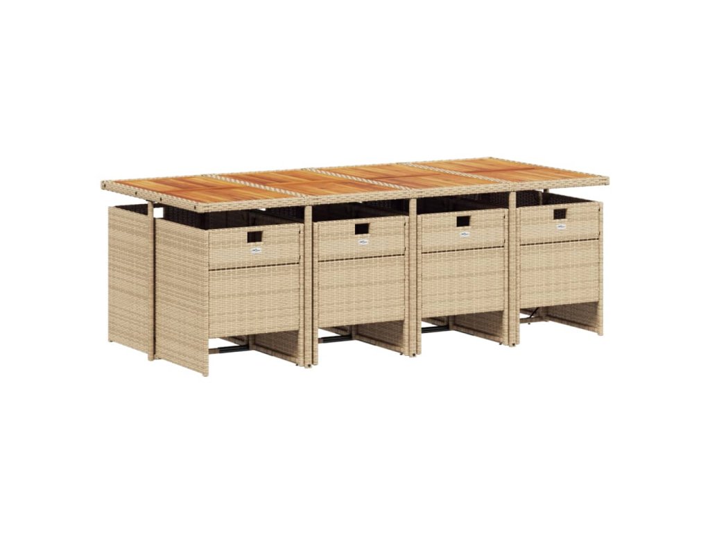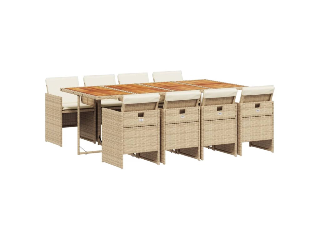 9dílný zahradní jídelní set s poduškami béžový polyratan 3277695