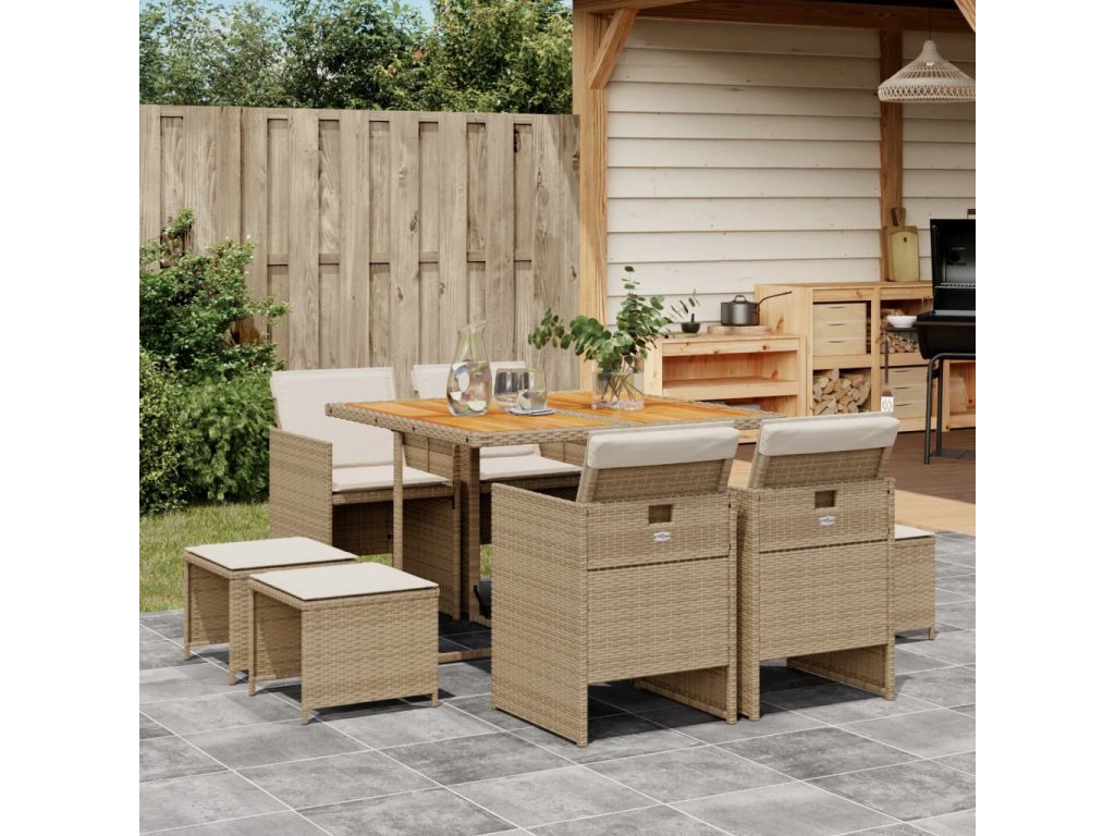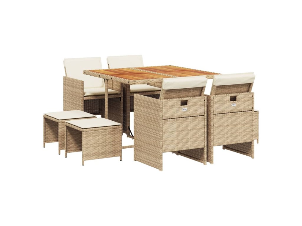 9dílný zahradní jídelní set s poduškami béžový polyratan 3277731
