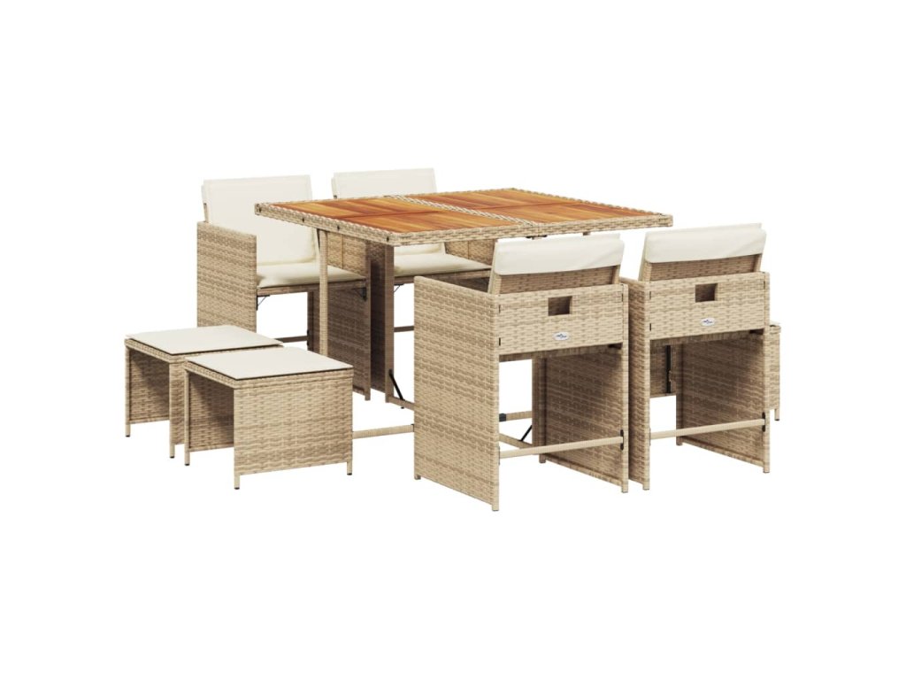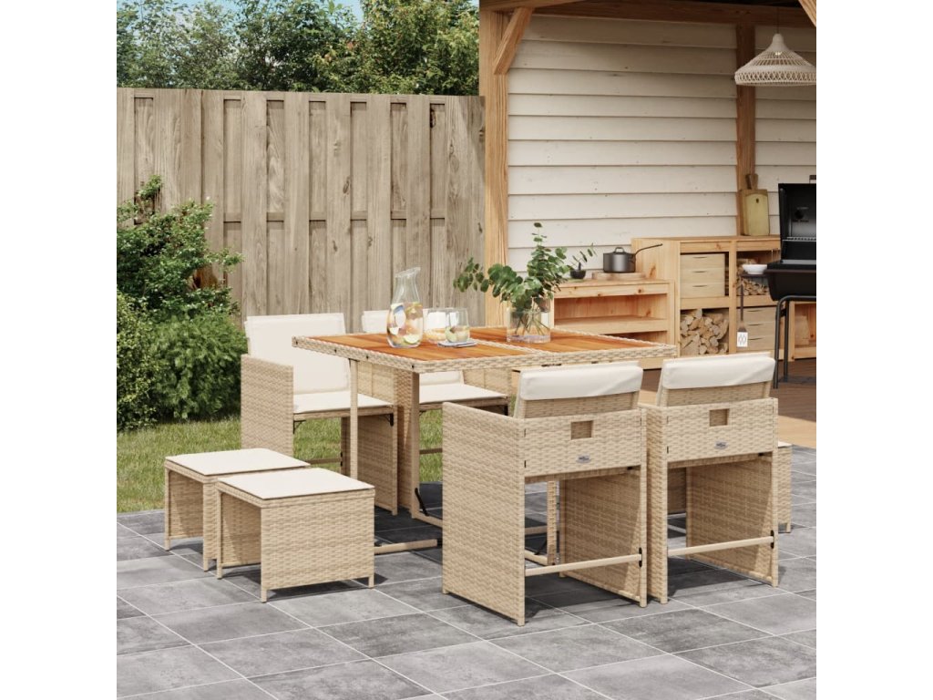 9dílný zahradní jídelní set s poduškami béžový polyratan 3277911