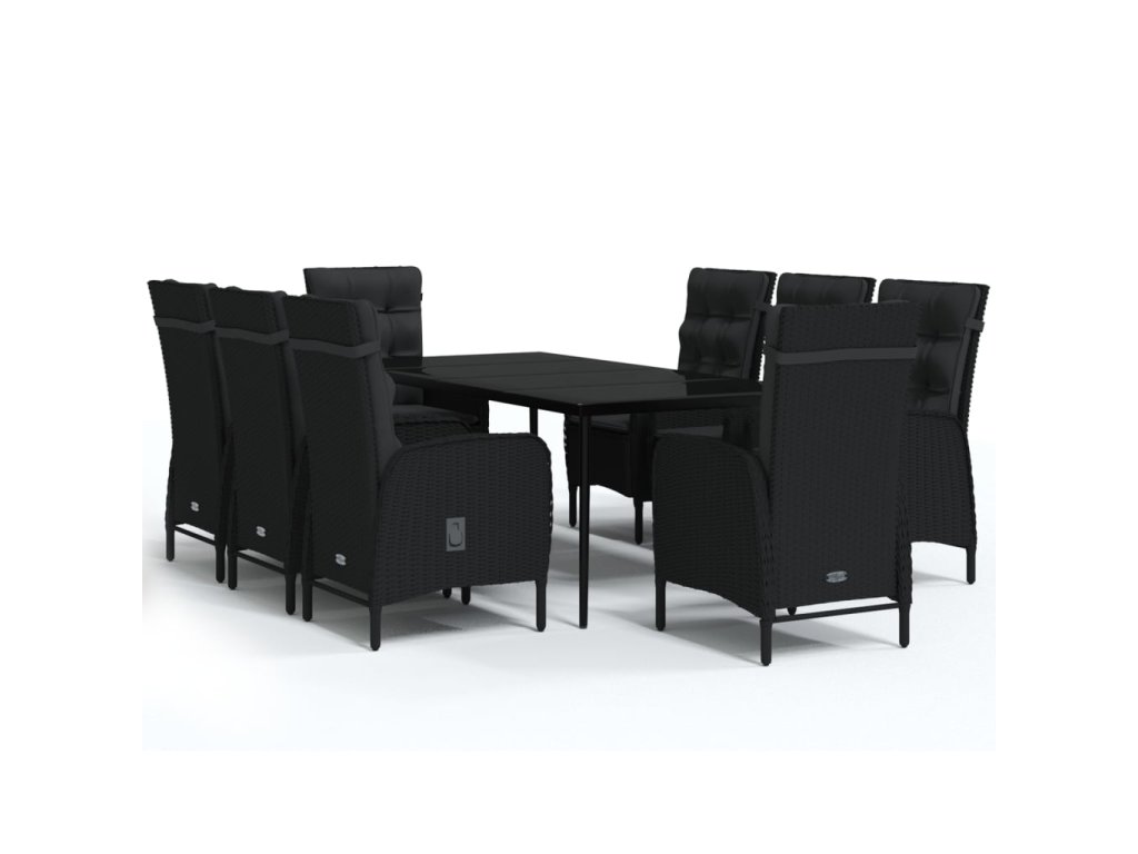 9dílný zahradní jídelní set s poduškami černý 3099370