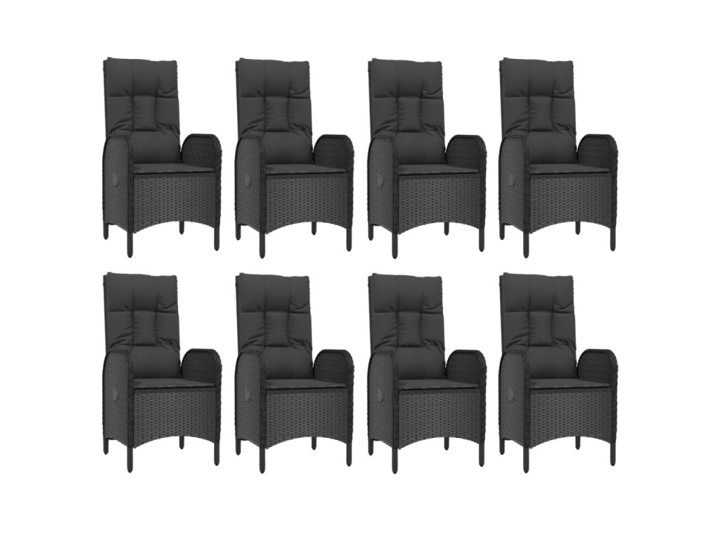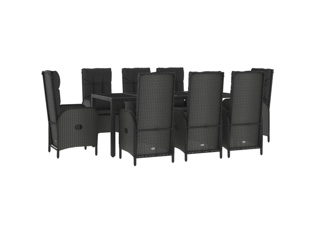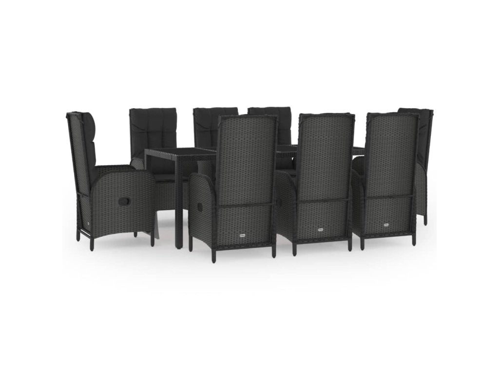 9dílný zahradní jídelní set s poduškami černý a šedý polyratan 3185058
